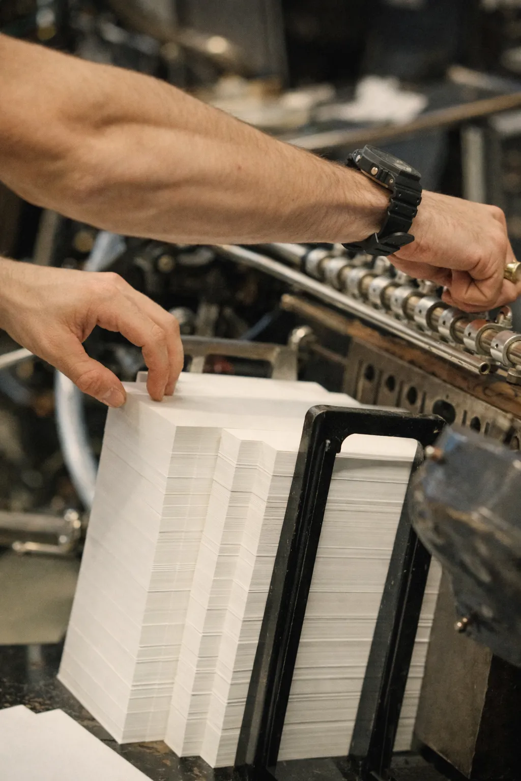 La mise en œuvre de la dorure nécessite la fabrication d’un cliché spécifique, adapté à la forme à marquer. Le film est ensuite transféré à chaud par pression sur le support, à l’aide de nos presses de dorure. Chaque passage est contrôlé afin de garantir netteté, régularité et qualité de finition.